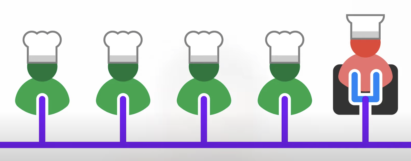 매니저는 누구한테는 요리해라, 누구한테는 빵을 구워달라할 정신이 없습니다.